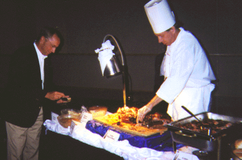 One of McKessonHBOC's finest, Nelson Crichton, samples the cider glazed ham.