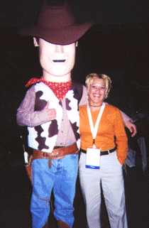 Trina Begley from Alverno Information Systems poses with Woody during one of the networking receptions.